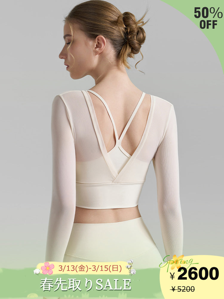 ZOMIGEN|Vバック パット付きメッシュ長袖 フェイクレイヤード – ZOMIGEN(ゾミゲン)