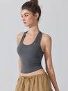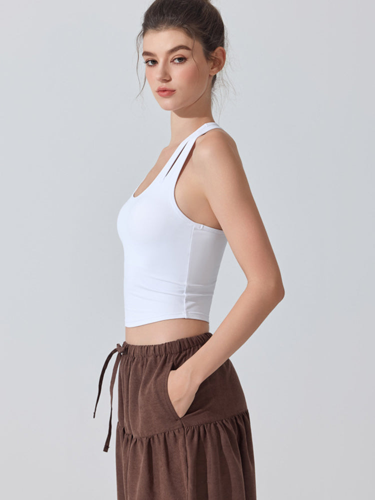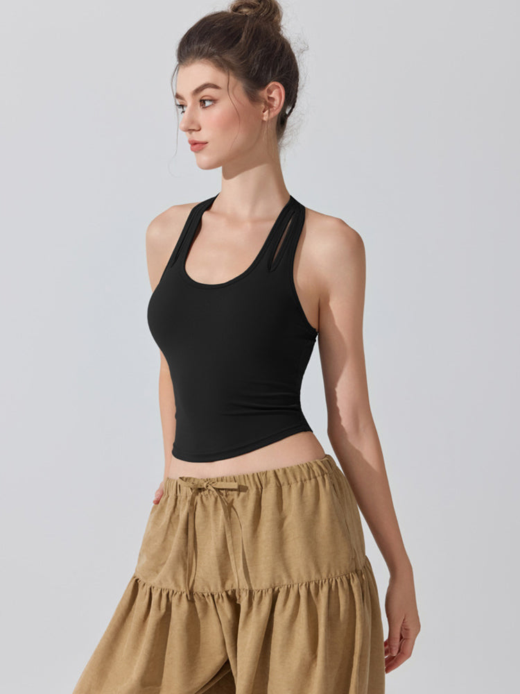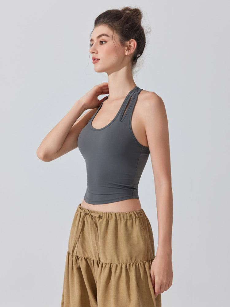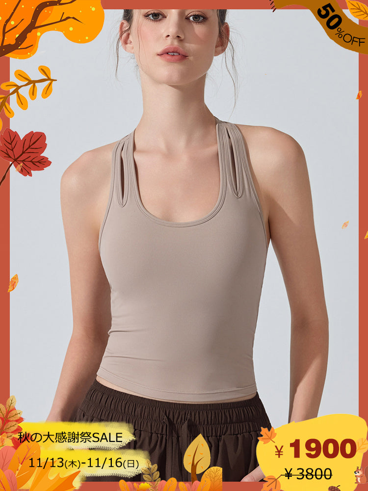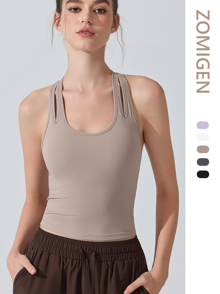 ZOMIGEN|Uネックパット付きタンクトップ 肩孔開きヨガトップス