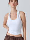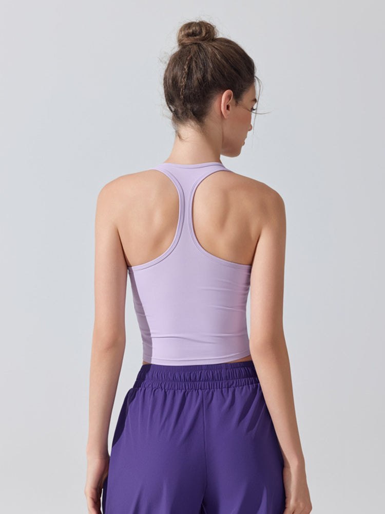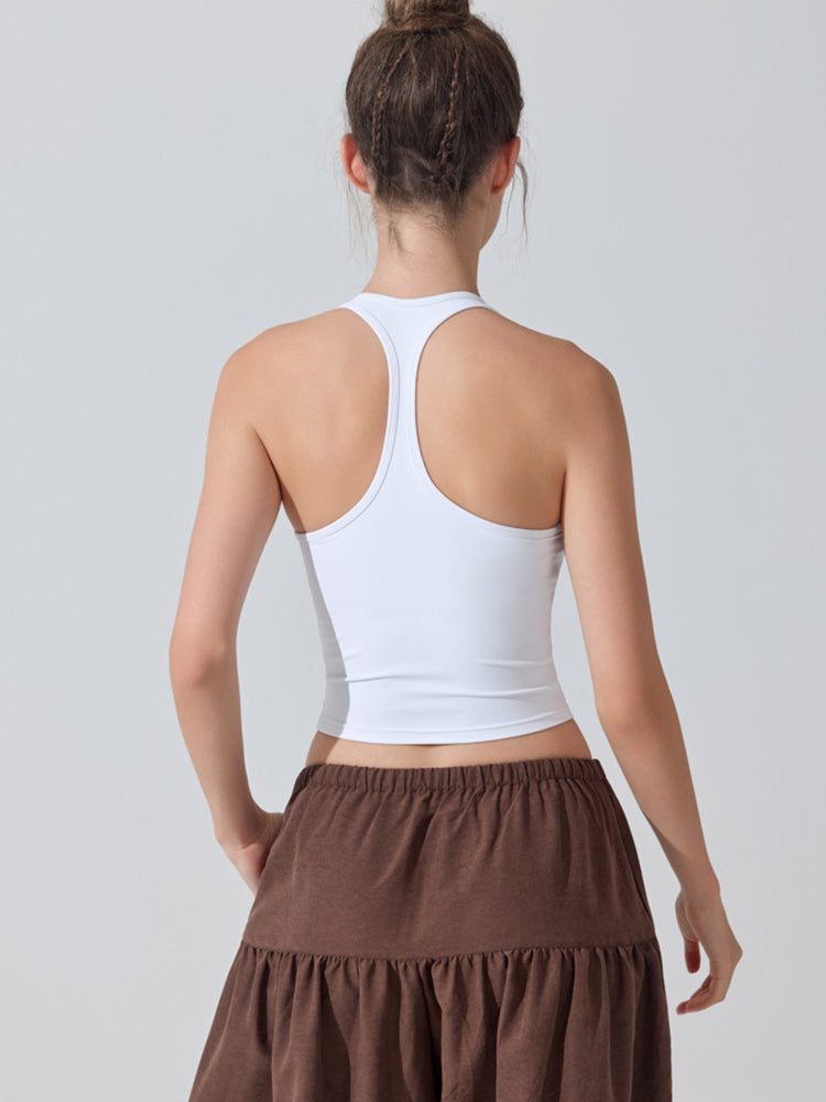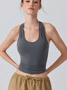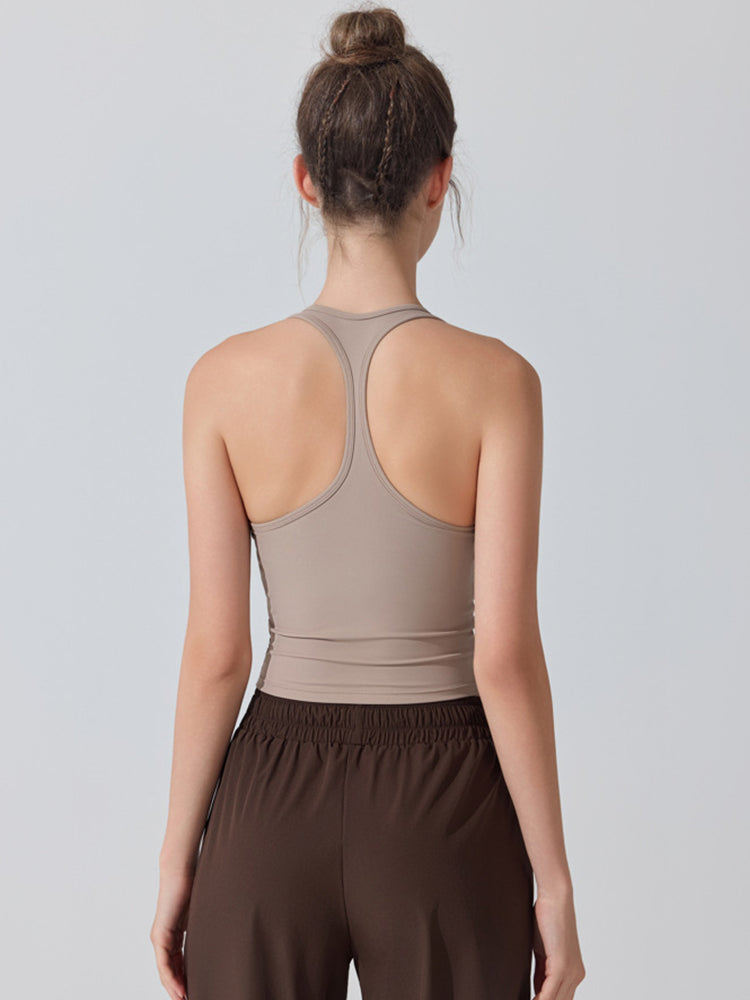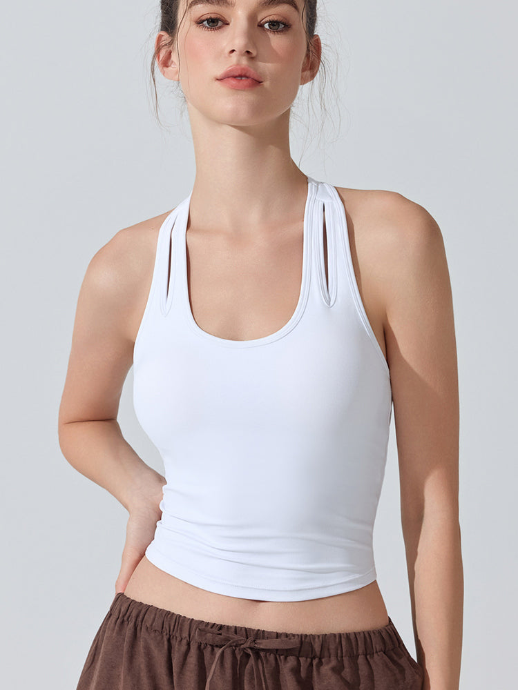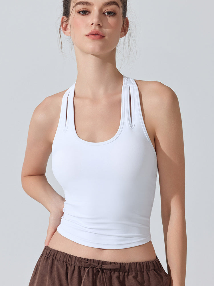 ZOMIGEN|Uネックパット付きタンクトップ 肩孔開きヨガトップス