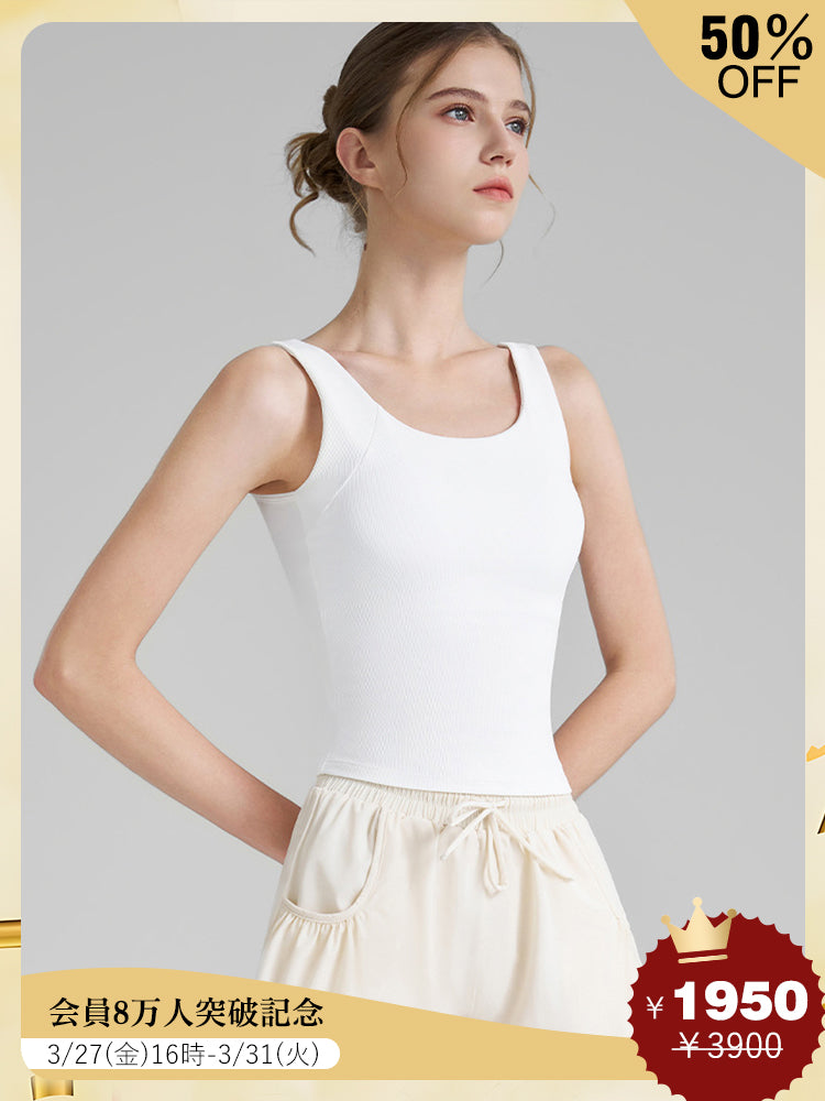ZOMIGEN|Uバンクパット付き リブヨガタンクトップ