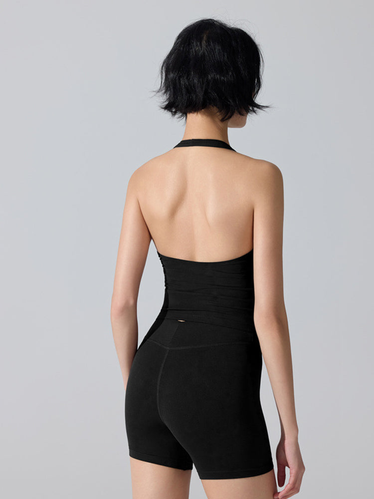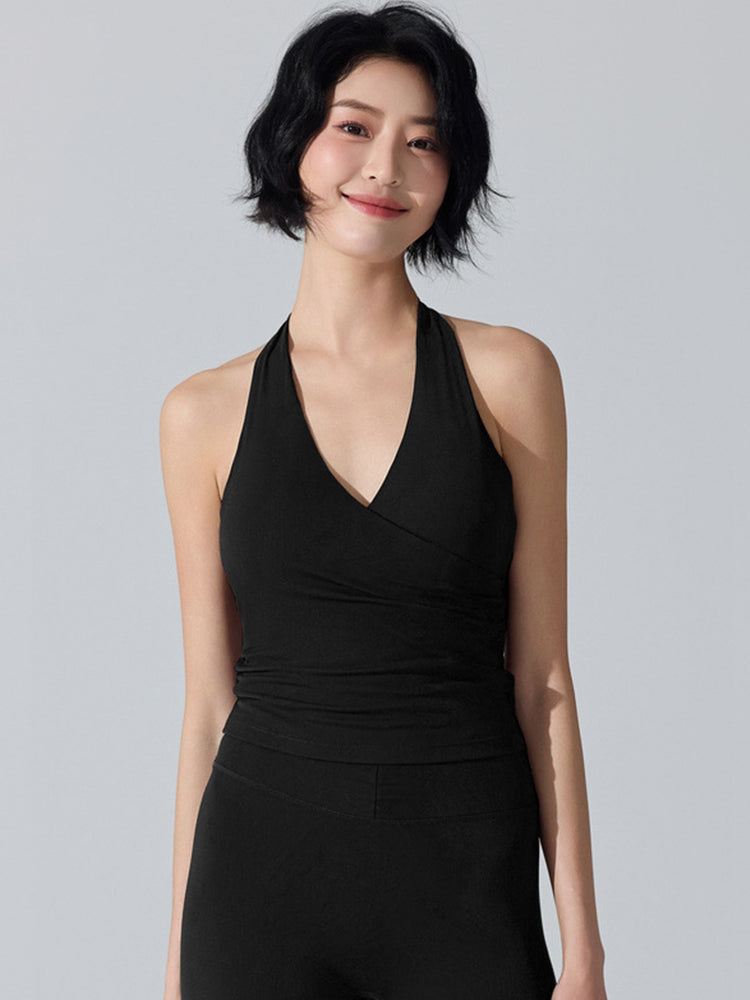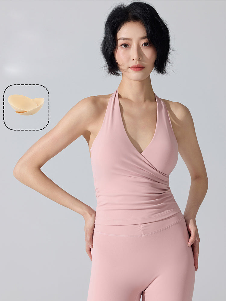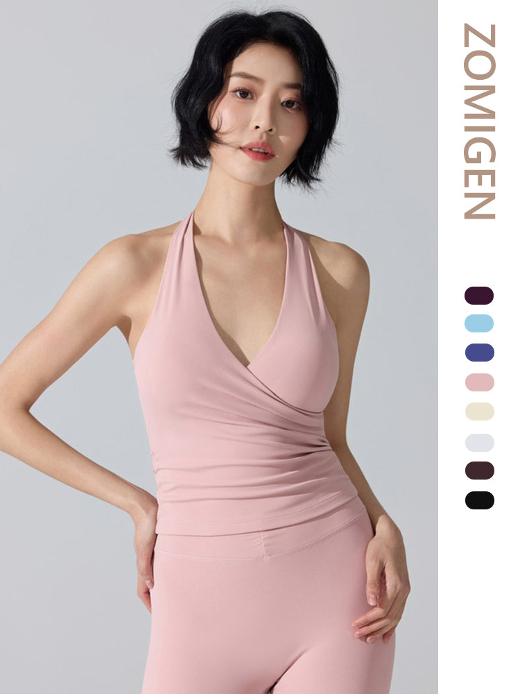 ZOMIGEN|Ⅴネックパット付きヨガトップ ホルターネック美背8色