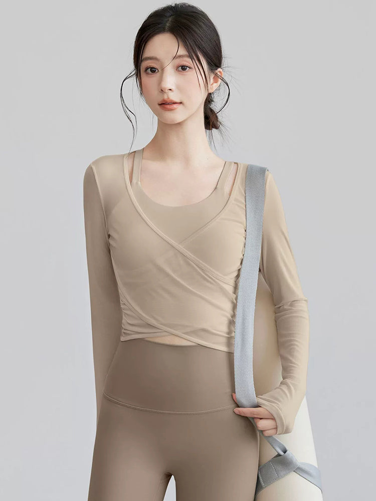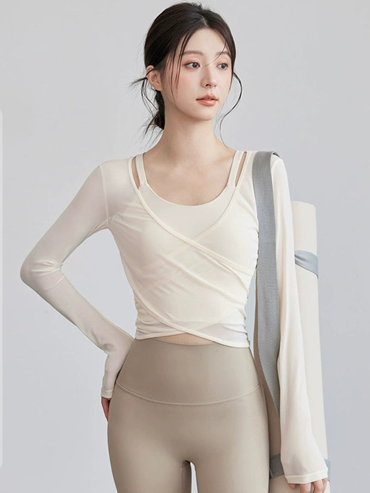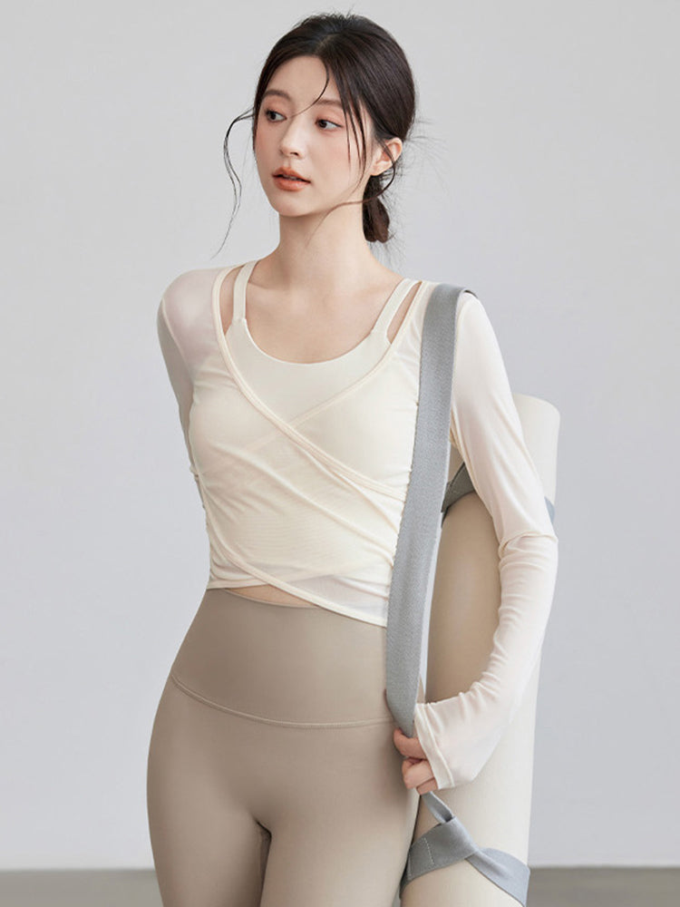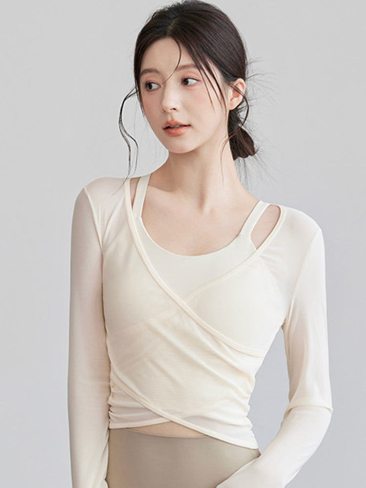 ZOMIGEN|フェイクレイヤード長袖ブラトップ メッシュパット付き