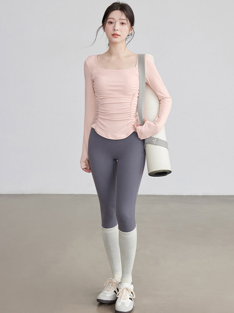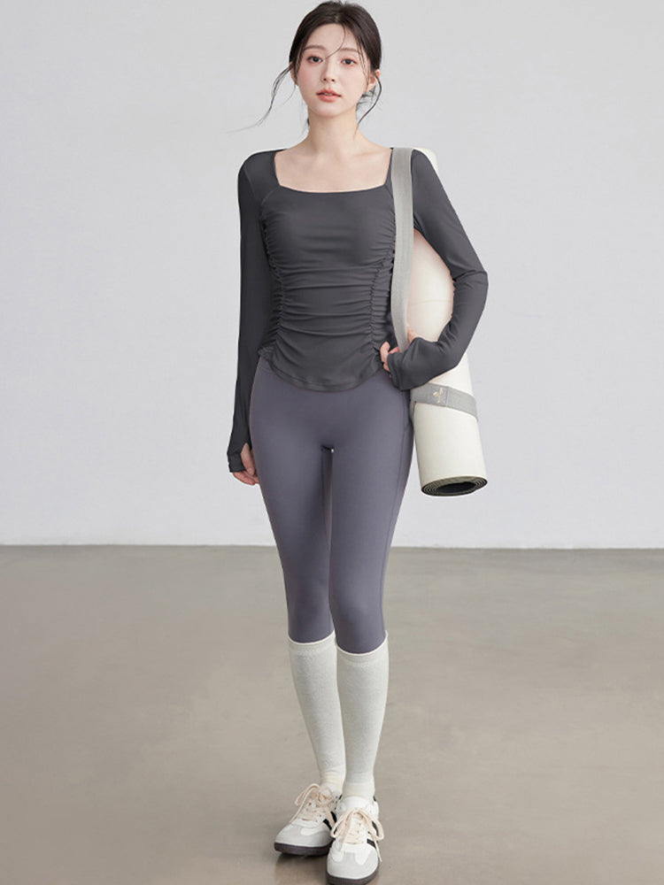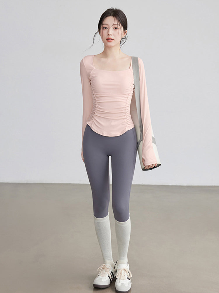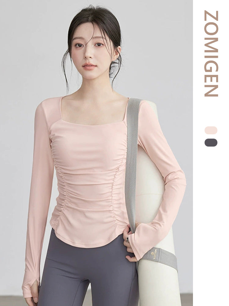 ZOMIGEN|瘦せ見え効果 ギャザーウエストヨガ長袖 – ZOMIGEN(ゾミゲン)