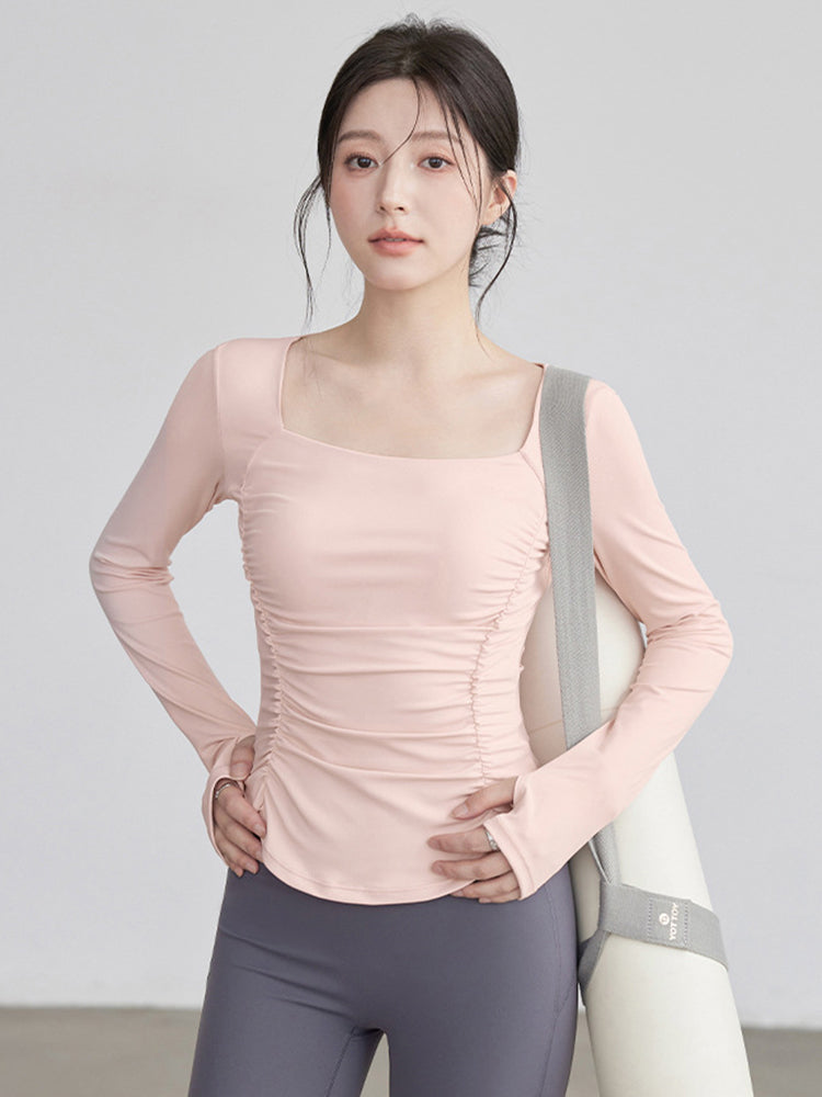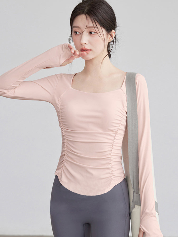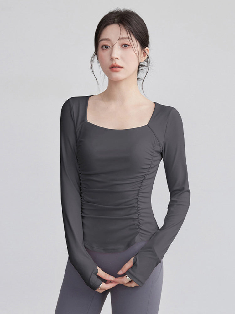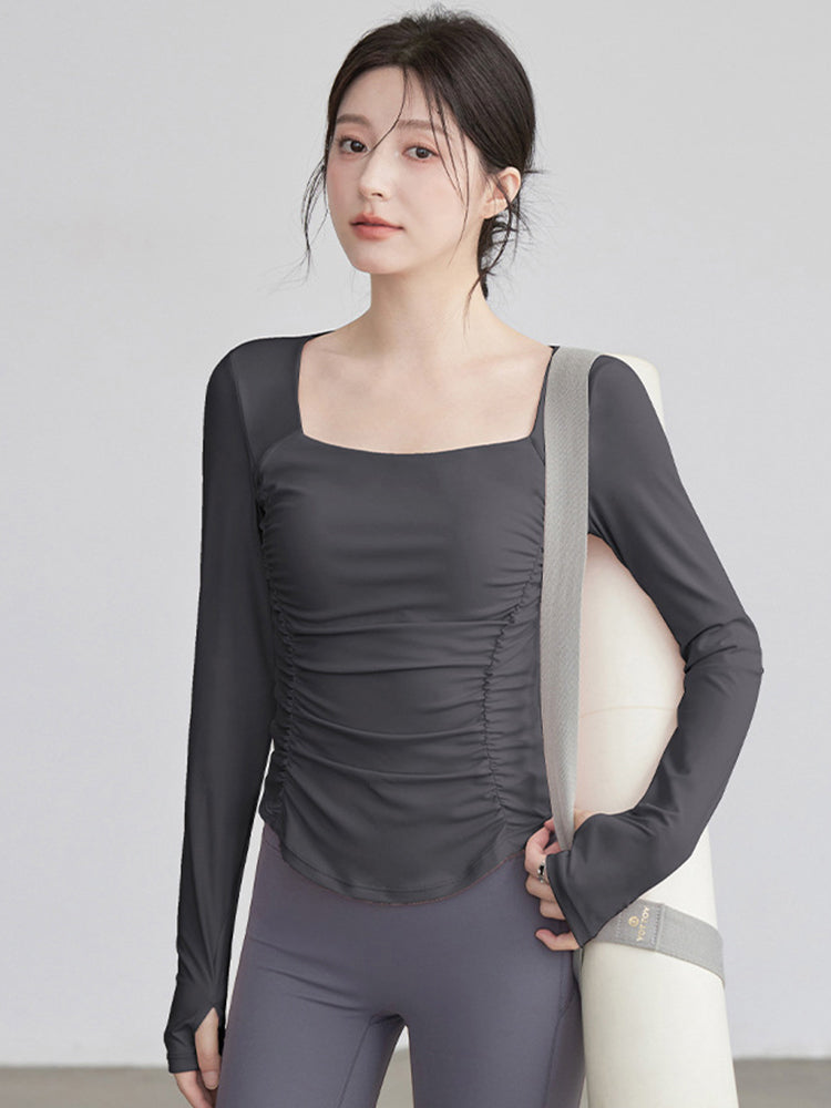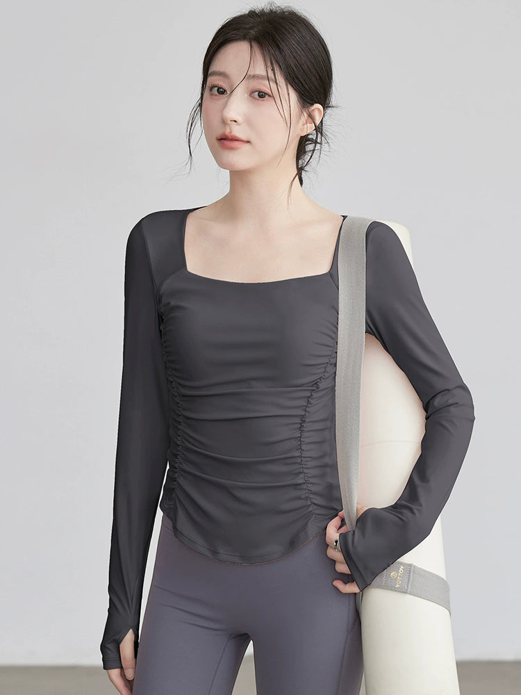 ZOMIGEN|瘦せ見え効果 ギャザーウエストヨガ長袖 – ZOMIGEN(ゾミゲン)