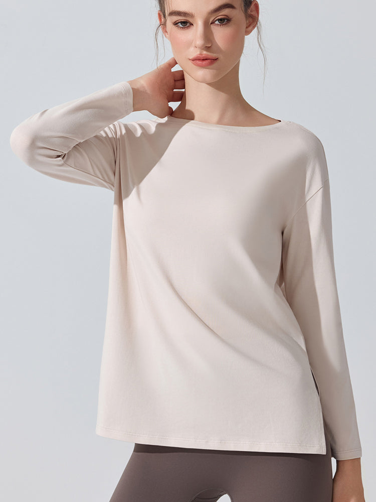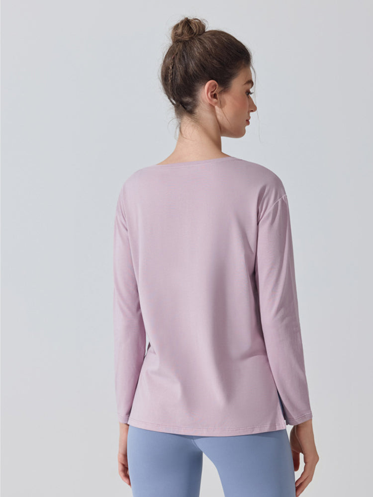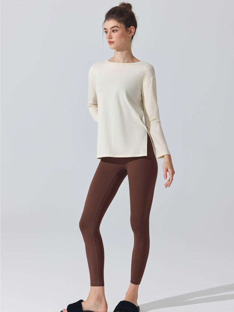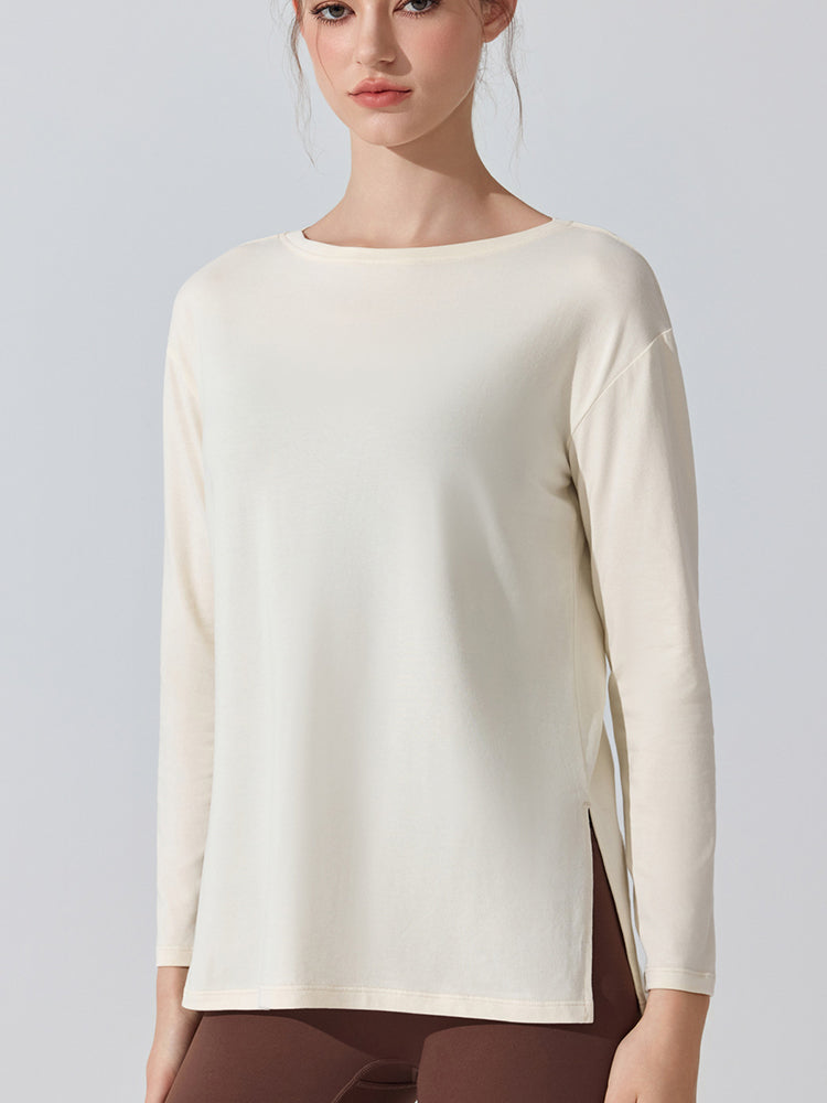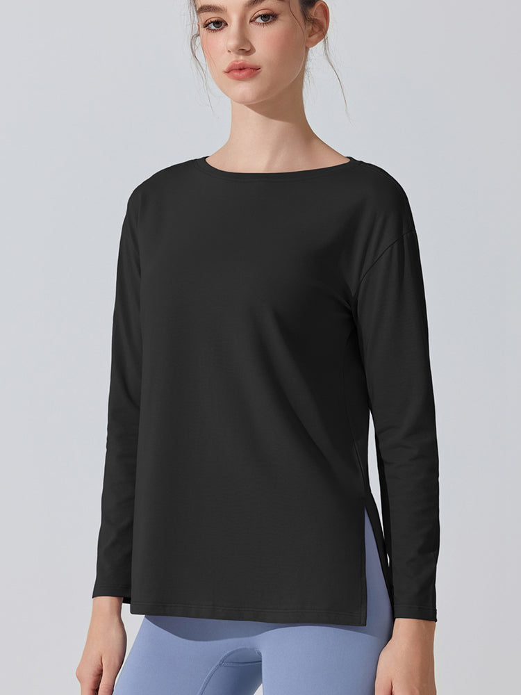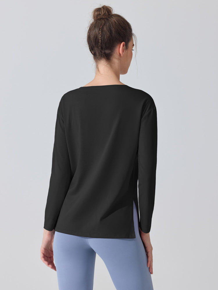 ZOMIGEN|秋スポーツ長袖Tシャツ サイドスリット入り