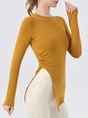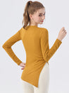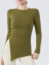 ZOMIGEN|スリット入り長袖 ギャザー瘦せ見え