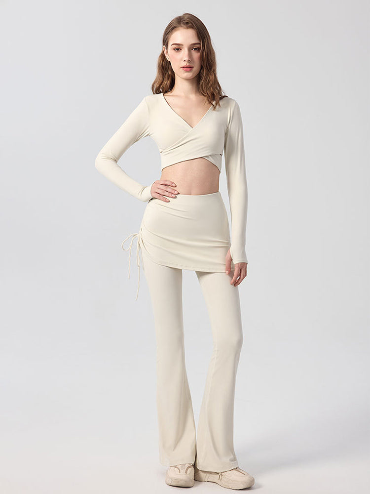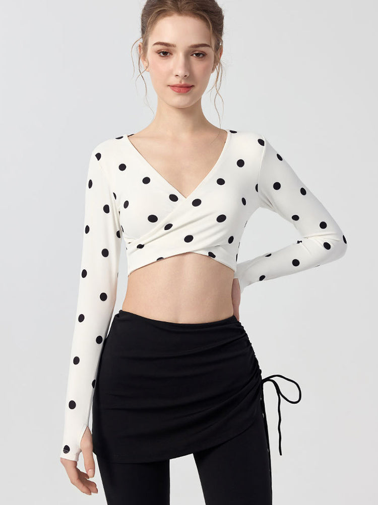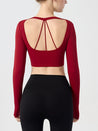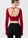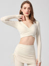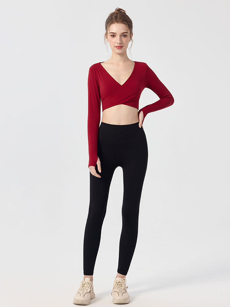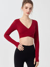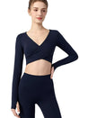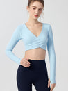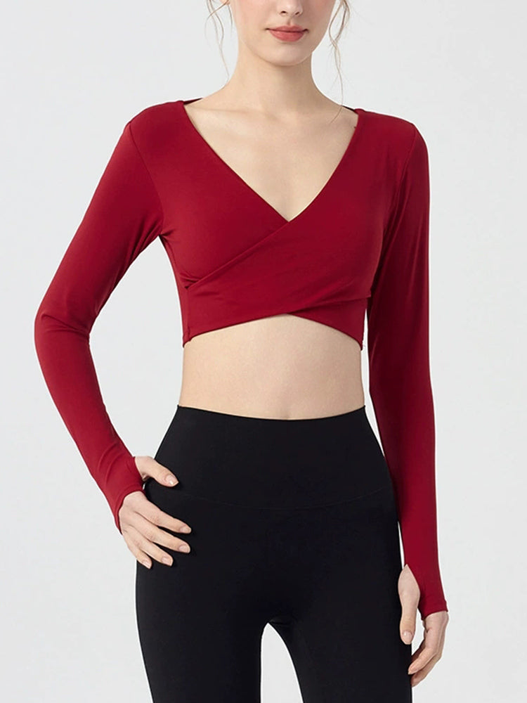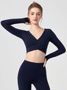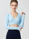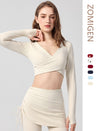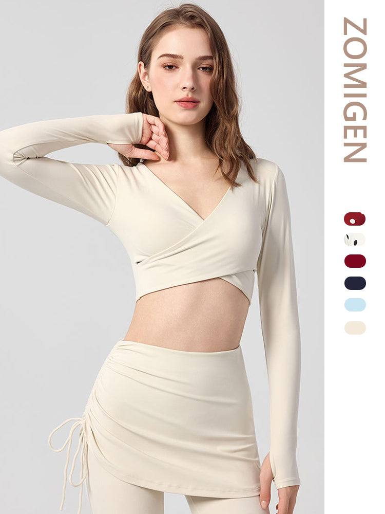 ZOMIGEN|Vクロス長袖ブラウス 美背ヨガウエア パット付き
