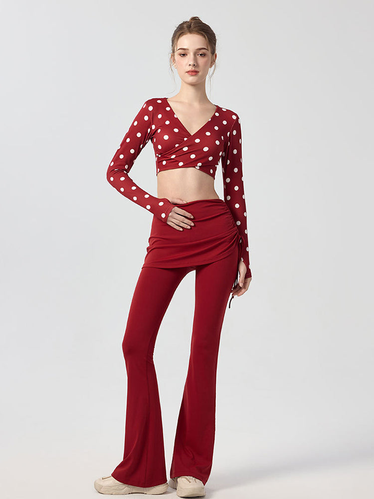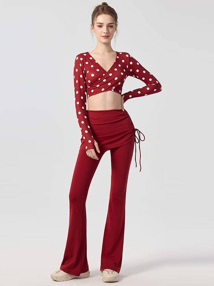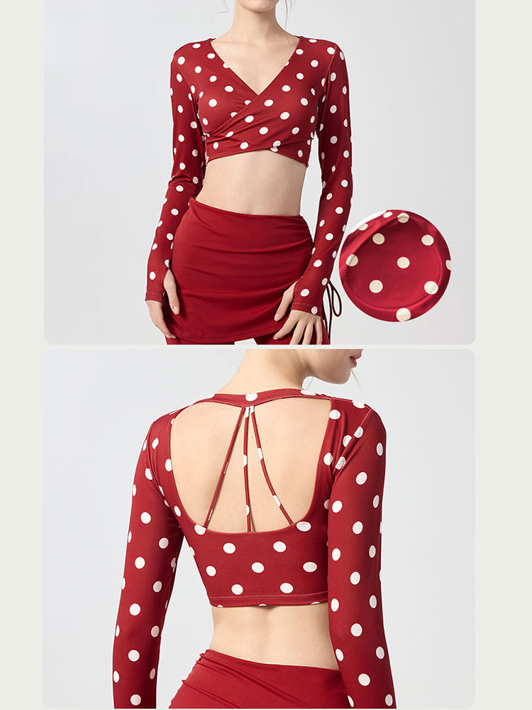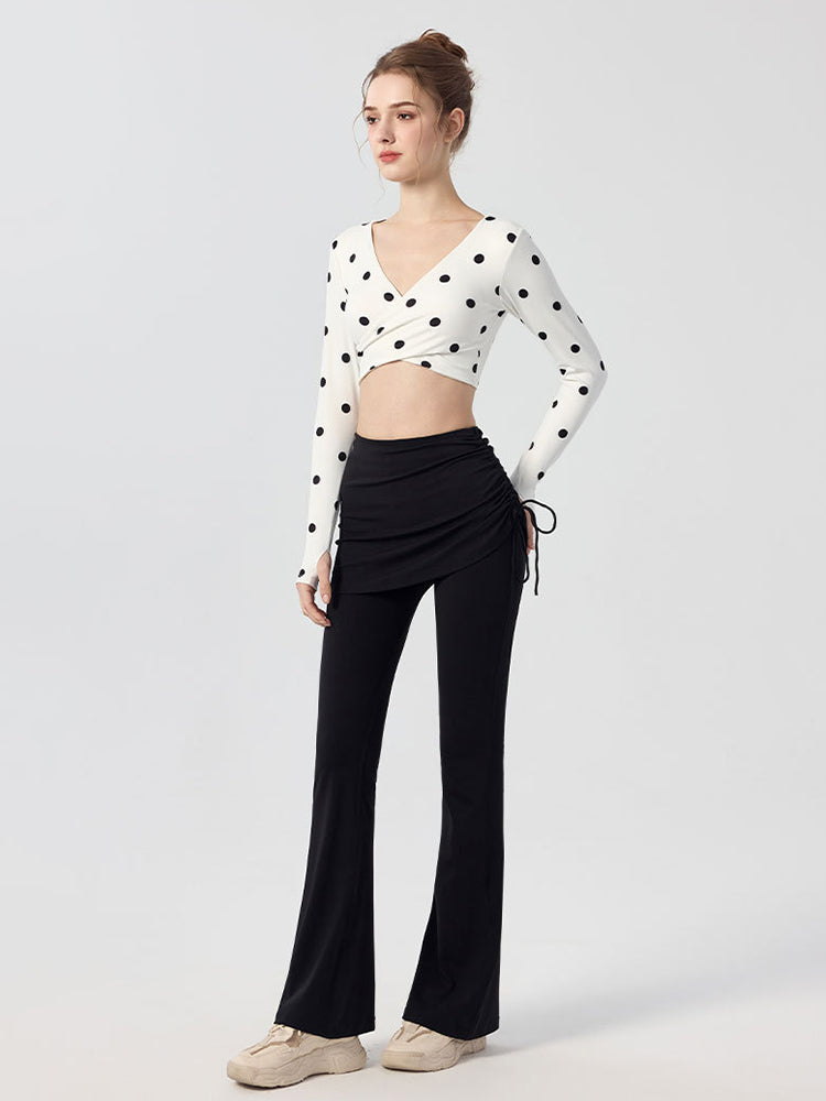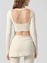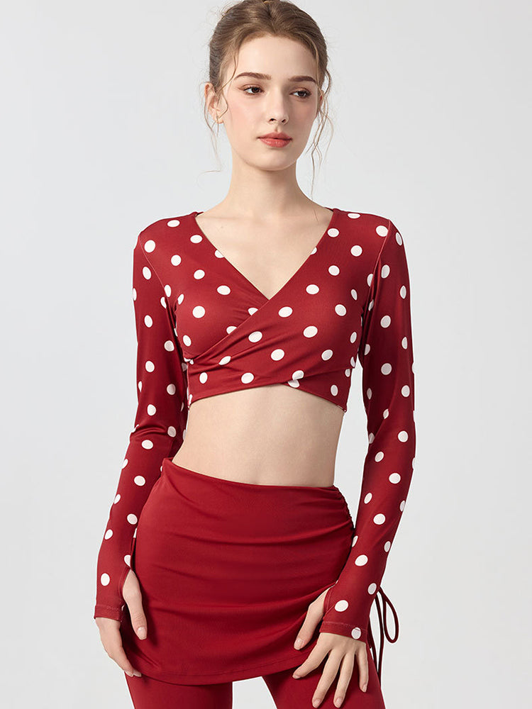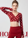 ZOMIGEN|Vクロス長袖ブラウス 美背ヨガウエア パット付き